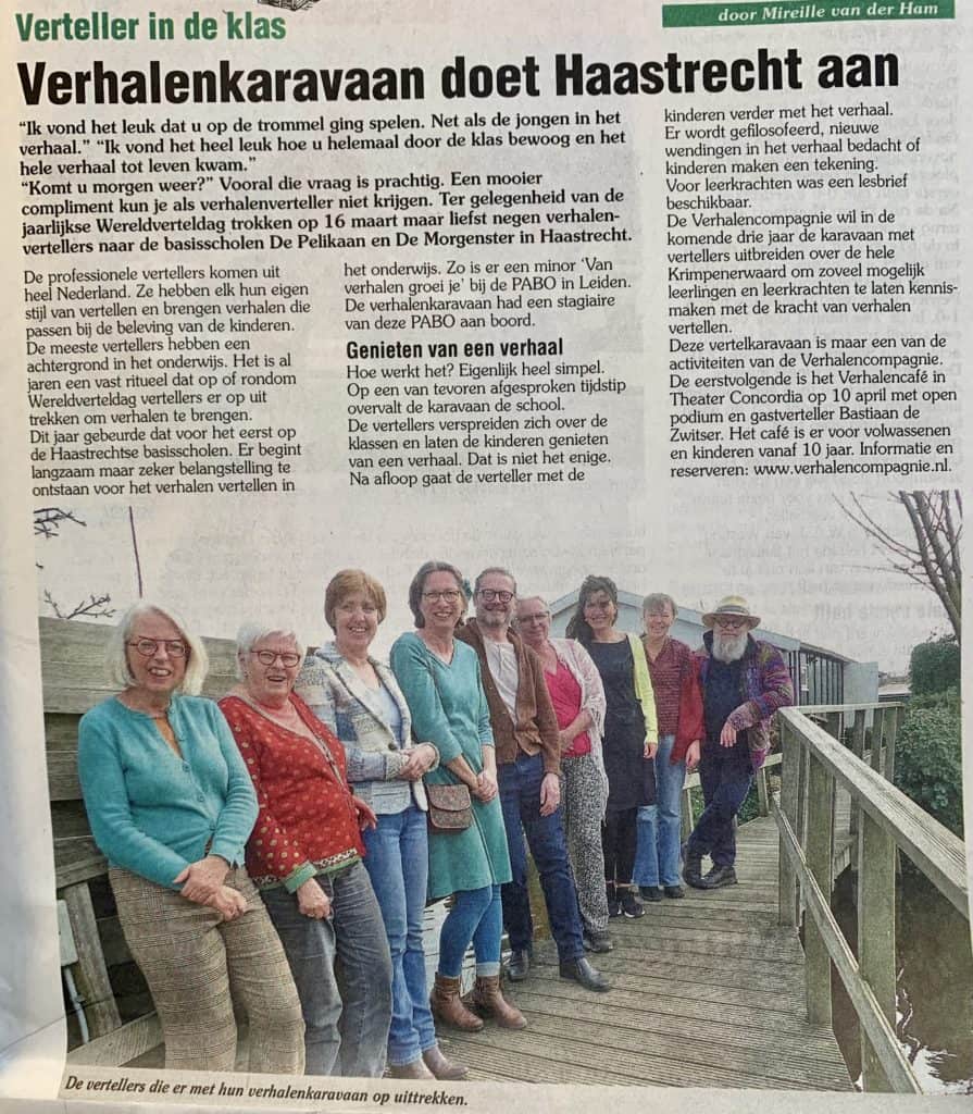 Vertelkaravaan naar basisscholen in Haastrecht en BergambachtGerda Hoogendijk23 maart 2022In de media Op 16 maart trok de vertelkaravaan met 9 vertellers langs de basisscholen in Haastrecht en Bergambacht. Zie artikel in de IJsselbode van 22 maart 2022.