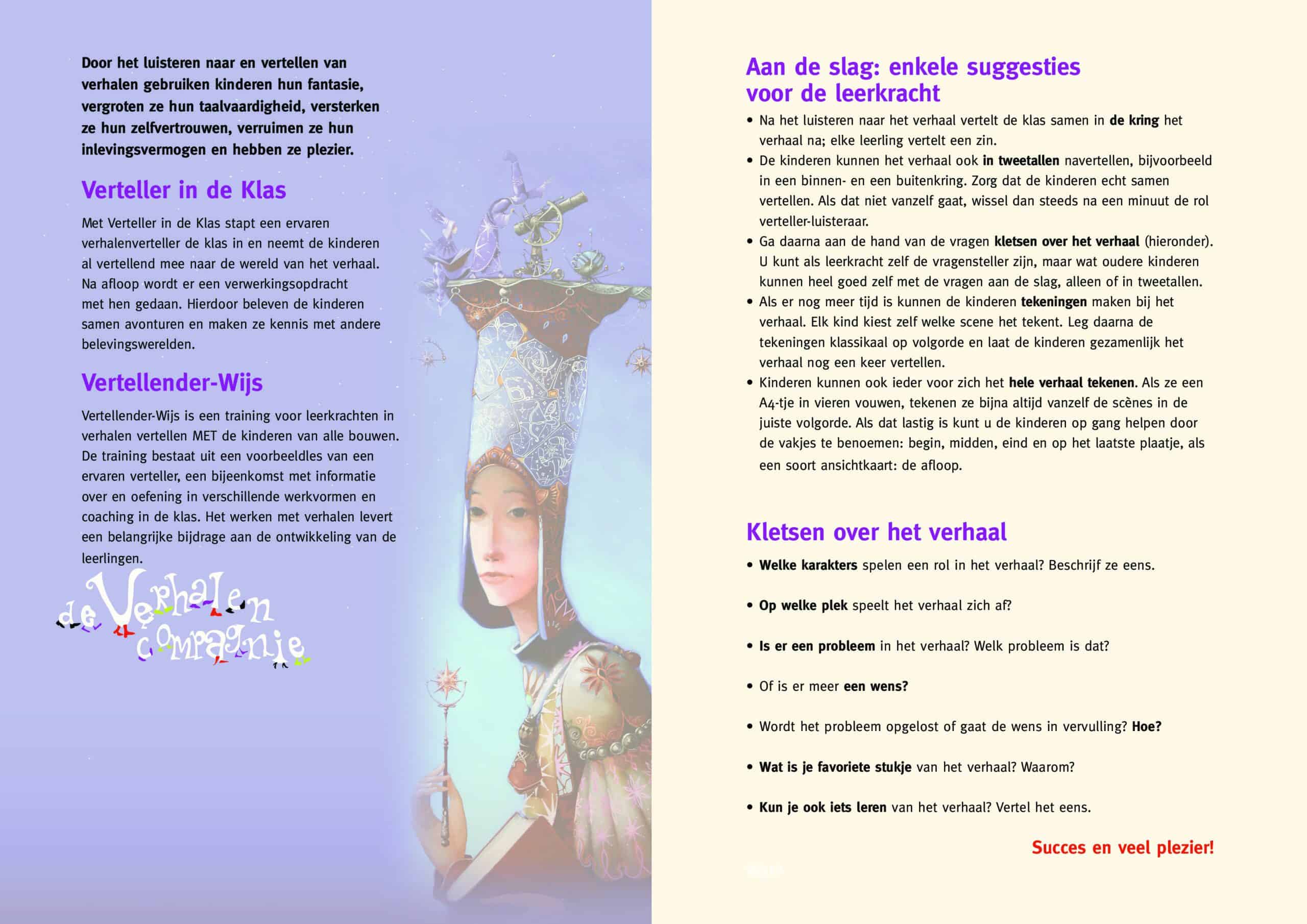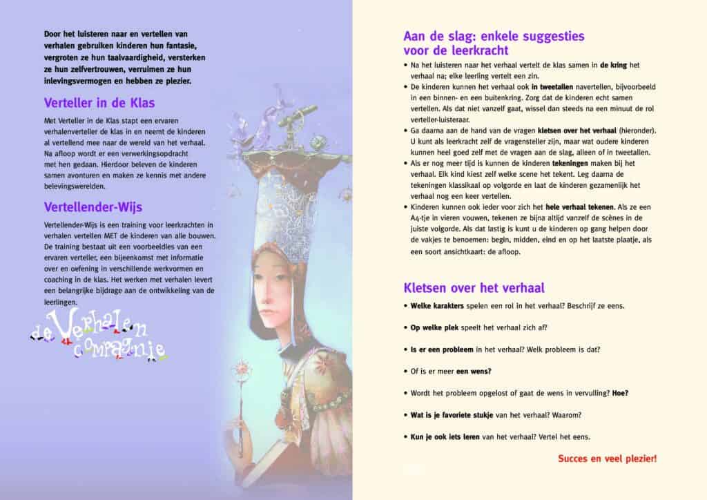 Voorafgaand aan het bezoek ontvangt de leerkracht een lesbrief. De leerkracht hoeft niets voor te bereiden, maar met behulp van de lesbrief kan de leerkracht na afloop nog verder borduren op het verhaal. Voor de leerkrachten en de leerlingen geldt: boeken dicht, digibord uit en lekker luisteren.